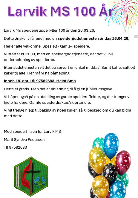 Bli med å feire Speidergruppas 100års jubileum søndag 26.april
